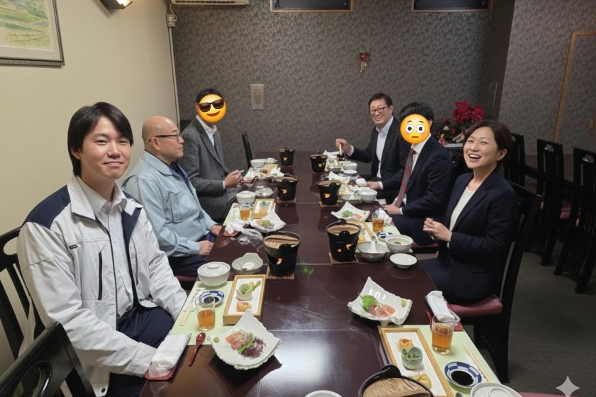 先輩和姉さん手前なのですが、なぜか一人だけ服装変わっています…!(笑)