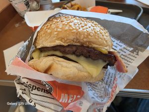 お昼ごちそうになったハンバーガー🍔湿布味みたいな炭酸のジュース、あれの名前はなんだろう😐