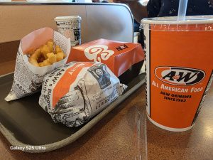 お昼ごちそうになったハンバーガー🍔湿布味みたいな炭酸のジュース、あれの名前はなんだろう😐